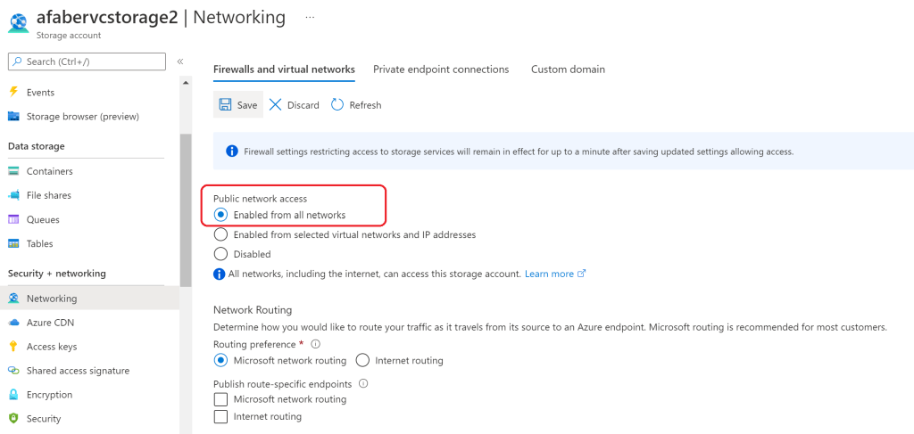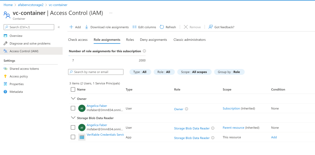 The second issue I had was that I originally assigned the ‘Storage Blob Data Reader‘ at container level, but it had to be at storage account level.