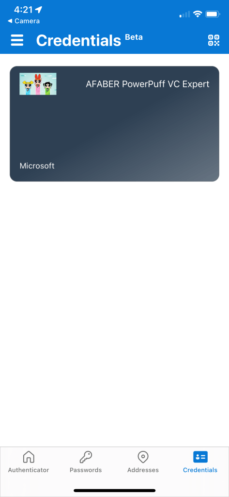 And I can also verify my credential. Once I scan the QR code to verify the credential, I see the following:
