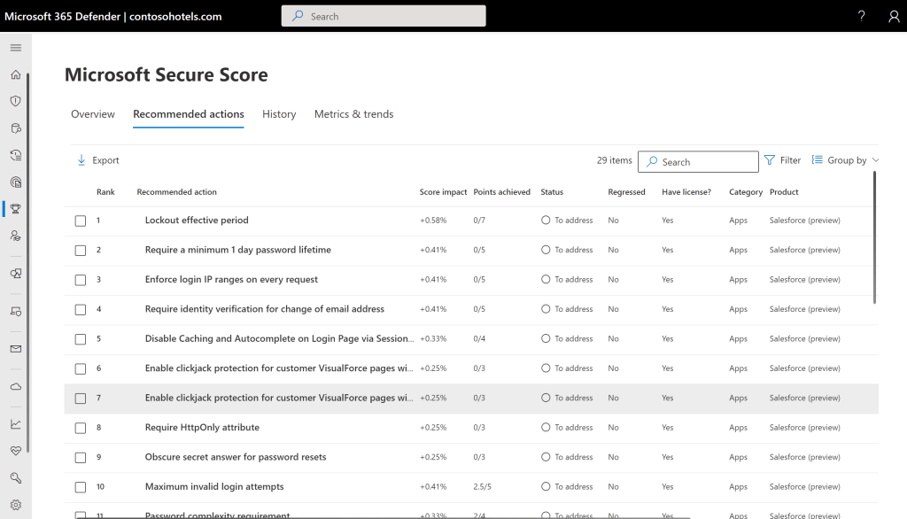 Security Posture for SaaS apps is super new, still in preview, but I can see the incredible potential. Currently, only available for Salesforce and ServiceNow, but I am sure more are to come. It makes recommendations on security best practices within those SaaS applications, as shown below: