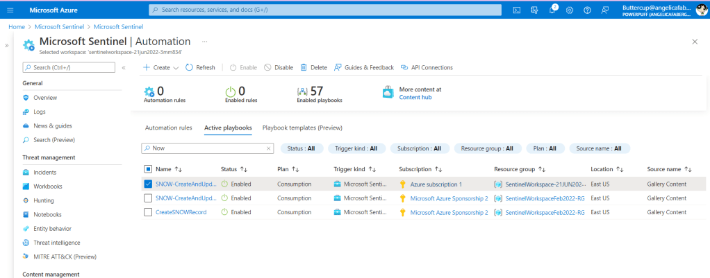 Why would I even need these permissions? In my case, I have a playbook that I need to trigger on my customer’s workspace, the “SNOW-CreateAndUpdateIncident” playbook. And that playbook needs some permissions to be able to execute correctly.