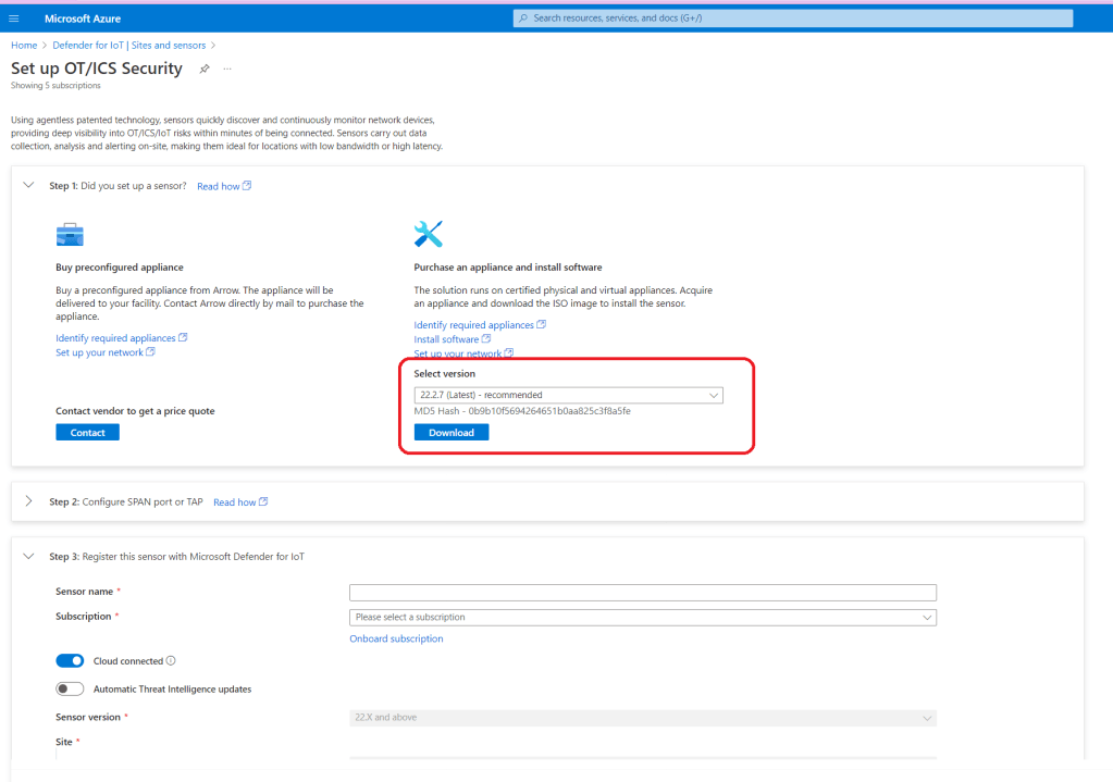 In order to configure your sensor, you will need to download the registration file that will be generated on step 3 from the portal when you click on “Register“.