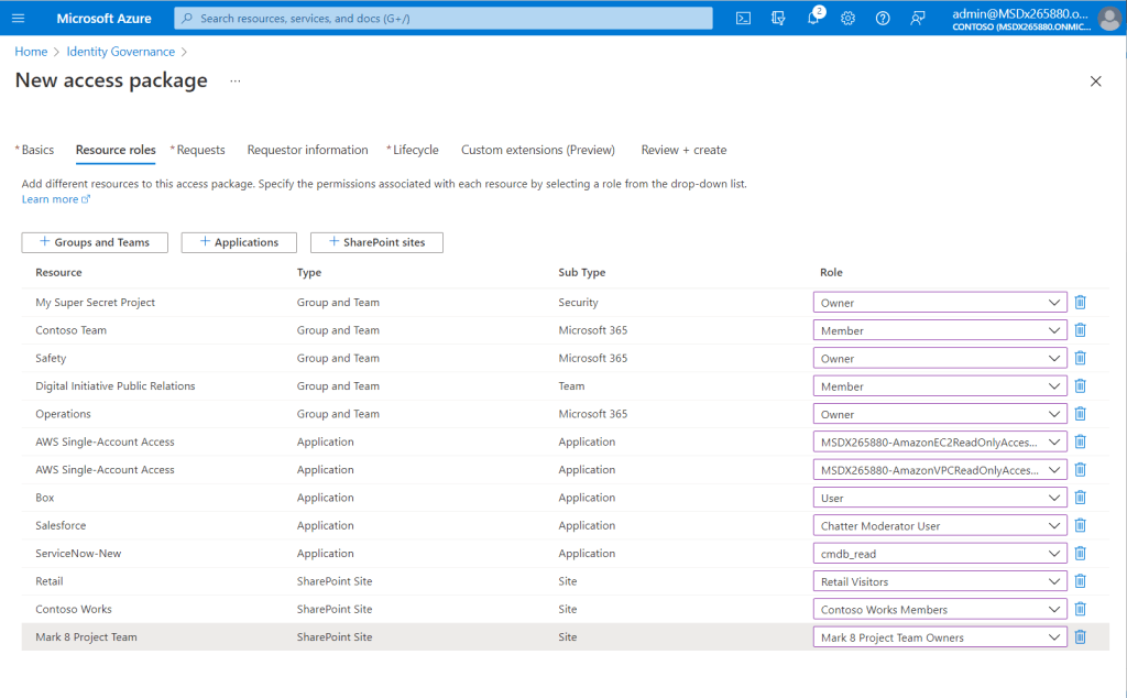 The benefit in creating access packages is that they are typically associated with a specific role, and so the owners of those roles can determine the level of access required in every single application, which can then be assigned or requested by members of teams, without having to request dozens, sometimes hundreds of different permissions.